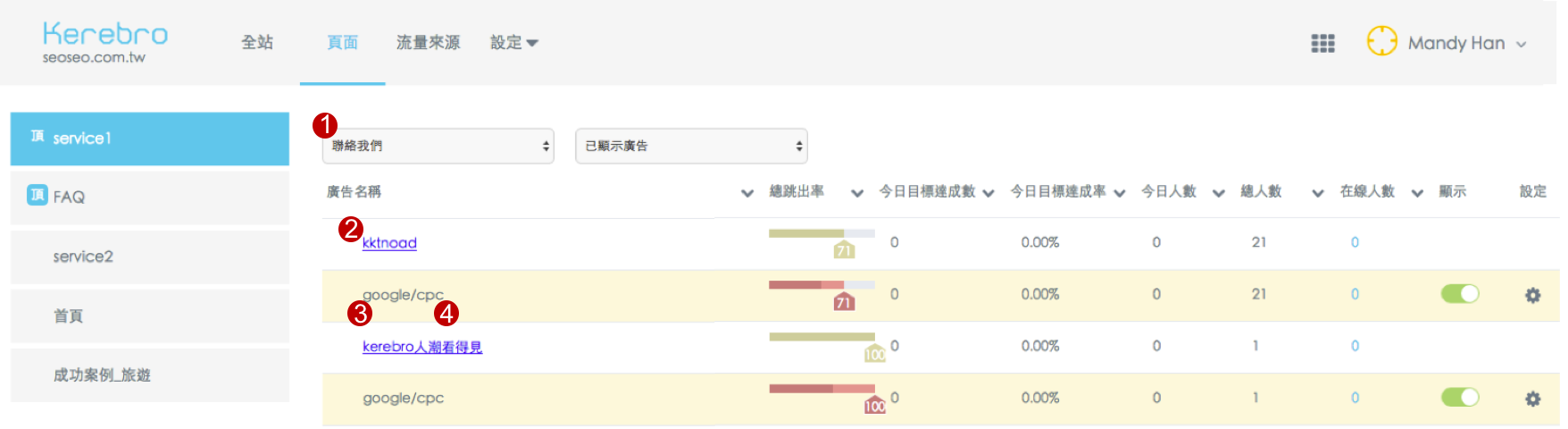 你可以在這裡實時觀察每一種流量來源是否有效,即時的下各種行銷預算調整的判斷。